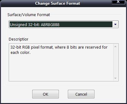 首先执行"File - Open"菜单,将图1所示的瞄准镜源图打开,然后执行"Change Surface Format …" 菜单,重新设置bmp图象的像素颜色格式为A8R8G8B8,即添加一个Alpha颜色值。
