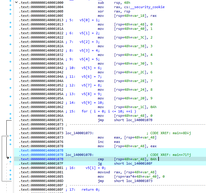 也好,那么让汇编来告诉你——以及我——这一切的真相吧,在这之前请你把i和b[10]的定义改成: